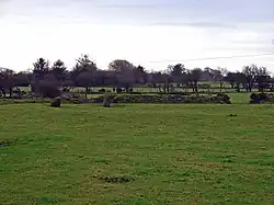 Der einst aus 17 hohen Menhiren bestehende Steinkreis (walisisch cromlech) war von einem breiten, niedrigen Wall von etwa 36 Meter Außendurchmesser umgeben, der mit einem, im Zugangsbereich höheren Trockenmauerwerk gefasst wurde. Erhalten sind zwei Steine (1,7 und 1,0 Meter hoch) und ein Rest des Walles. Ein breiter, von acht hohen Menhiren begrenzter Zugang liegt im Westen.