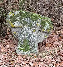 Mutmaßlich handelt es sich um ein Sühnekreuz. Das unscheinbare Sandsteinkreuz hat die Form eines Antoniuskreuzes, ist etwa 70 cm × 65 cm × 25 cm groß und schräg nach hinten geneigt. Es steht an einer Hecke am Rand einer kleinen Grünfläche. Das Kreuz ist gut erhalten und bemoost (Stand Dezember 2018). Durch die großen Segmentstützen unterhalb der Arme wirkt es fast wie ein Scheibenkreuzstein. Der Kopf ist mäßig verwittert.[1] Das wahrscheinlich nachmittelalterliche Steinkreuz ist vom Bayerischen Landesamt für Denkmalpflege als Baudenkmal (D-5-71-216-41) ausgewiesen.[2]
