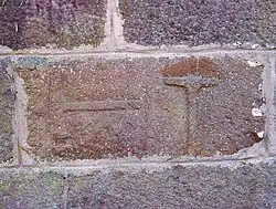 Auch in römischer Zeit sind Steinmetzzeichen häufig belegt. Forschungsgeschichtlich sind hierbei insbesondere die Zeichen der stadtrömischen Befestigungsanlagen aus republikanischer Zeit sowie aus Pompeji von Interesse, da diese besonders früh systematisch dokumentiert worden sind.[26] Auch in den römischen Provinzen sind diverse Steinmetzzeichen belegt, z. B. an der Porta Nigra in Trier (2. Jahrhundert n. Chr.).[27]