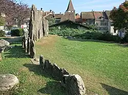 Bei Aushubarbeiten für ein Parkhaus wurden 1975 im angeschwemmten Erdmaterial der Lutrive 23 Menhire («Hinkelsteine») aus dem Neolithikum entdeckt, von denen die grössten rund 13 Tonnen schwer sind. Die Menhiranlage wurde 1986 in ihrer ursprünglichen Formation wieder aufgerichtet und ein paar Dutzend Meter südlich des ursprünglichen Standortes rekonstruiert.[1]