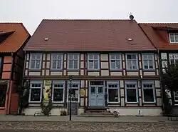 Das zweigeschossige Fachwerkgebäude mit verputzten Ausfachungen entstand nach 1756. In dem im Rahmen der Städtebauförderung sanierten Haus befinden sich ein Bistro, ein Laden und Wohnungen.