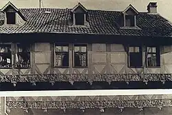 Das Gebäude wurde 1944[10] durch Bombentreffer schwer beschädigt und nach Kriegsende nur teilweise wieder aufgebaut. Da das Fachwerkobergeschoss zerstört war, sind die o. g. Schnitzereien heute nicht mehr vorhanden.