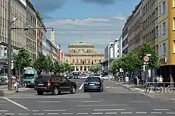 | Steinweg: Blickrichtung Osten auf das Staatstheater | |