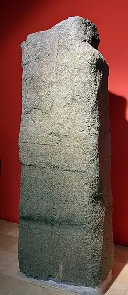 Die Stele ist aus hellgrün-grauem Gabbro, der vermutlich im sieben Kilometer westlich gelegenen Dorf Kaleköy gebrochen wurde. Sie hat eine Höhe von 1,86 Metern, eine Breite von 0,68 Metern und eine Tiefe von 38 Zentimetern. Ihr Gewicht wird auf etwa 1,2 Tonnen geschätzt. Da das Stück als Grabstein zweitverwendet wurde und verkippt war, sodass die Bildseite nach oben im Boden lag, war es stark der Witterung ausgesetzt und ist dementsprechend stark verrieben. Die Ränder sind bestoßen, entscheidende Teile scheinen aber nicht zu fehlen. Die Einzelheiten der Darstellung sind nur mit künstlichem Streiflicht zu erkennen. Die gesamte Vorderfläche des Blocks ist geglättet; etwa in halber Höhe verläuft eine horizontale Linie, die die Basis für die Bildfläche von 80 × 60 Zentimetern bildet. Die Abbildung zeigt auf der linken Seite einen nach rechts gewandten Gott, der auf einem ebenfalls nach rechts gewandten Hirsch steht, der selbst wiederum auf stilisiert schuppenartig dargestellten Felsen (Berggöttern) steht. Ihm gegenüber steht eine weitere Person, vermutlich ein Herrscher. Die Körperformen des Tieres sind im Vergleich zu späthethitischen Bildnissen plastischer ausgearbeitet. Die Brust ist nach vorn gewölbt und der Kopf hoch erhoben. Vom Geweih sind keine Einzelheiten zu erkennen. Die linke Gestalt trägt eine Kopfbedeckung, von der der obere Teil abgebrochen ist. Sie kann aber als Spitzmütze ergänzt werden, die die Person als Gott ausweist, auch wenn von Hörnern keine Spuren mehr erkennbar sind. Er ist mit einem Schurz mit breitem Gürtel und Schnabelschuhen bekleidet. Auf der linken Schulter sitzt ein Vogel, über der rechten trägt er einen Bogen. Über dem vorgestreckten linken Arm ist undeutlich ein Hirschgeweih, die luwische Hieroglyphe CERVUS zu sehen, die als Name des Schutzgottes Kurunta gelesen wird. Der gegenüberstehende Mann ist infolge des Abriebs erheblich schlechter zu erkennen. Er steht auf zwei kleinen Mischwesen mit erhobenen Armen. Erkennbar sind beide Beine mit Schnabelschuhen und der Saum eines Schurzes über den Knien. Davor ist eine schräge, leicht gebogene Linie auszumachen, die etwa von der Hüfte der Gestalt bis zum Boden vor die Vorderläufe des Hirsches reicht. Sie kann dahingehend gedeutet werden, dass der vor dem Gott Stehende diesem ein Trankopfer darbringt (libiert). Dazu schüttet er eine Flüssigkeit aus einem Gefäß in eine Mulde oder ein Becken auf dem Boden vor dem Gott. Eine Beischrift ist beim Libierenden nicht vorhanden, was eine Identifizierung nicht möglich macht. Auffällig ist an der Darstellung, dass der opfernde König größer als der Gott abgebildet ist. Dies ist möglicherweise auf die vorgegebene Fläche der Reliefierung und das Prinzip der Isokephalie (Kopfhöhengleichheit) zurückzuführen. In der rechten oberen Ecke weist der Reliefblock eine Ausklinkung auf, deren Funktion unklar ist. Es könnte sich um eine Auflage für einen Balken handeln, was bedeuten würde, dass der Stein eine Türlaibung schmückte.
