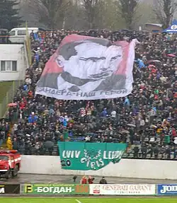 Уболівальники тримають портрет Степана Бандери. In: unian.ua. 13. März 2011, abgerufen am 13. April 2022 (ukrainisch). - ↑ Serhii Plokhy: Goodbye, Lenin! In: Die Frontlinie. Warum die Ukraine zum Schauplatz eines neuen Ost-West-Konflikts wurde. Rowohlt, Hamburg 2022, ISBN 978-3-498-00339-5, S. 386–391 (eingeschränkte Vorschau in der Google-Buchsuche – englisch: The Frontline. Essays on Ukraine’s Past and Present. Cambridge MA 2021.).