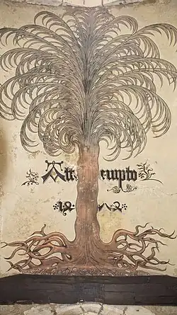 - Dekorationsarbeiten (Zierschriften, vielleicht auch die Palmenembleme) zur Hochzeit 1474 in Schloss Urach
