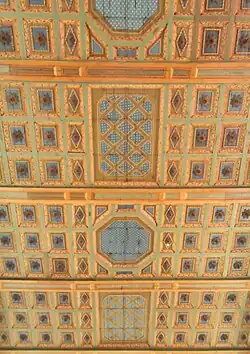 Der 50 Meter hohe[4][Anmerkung 3] Glockenturm war erst 1890 fertiggebaut. 1923 kamen zu den drei bereits vorhandenen Glocken noch zwei weitere hinzu. Nach dem Erdbeben von 1905 entwarf Kolë Idromeno 1909 eine neue Decke.[1] Diese zählt zu den wichtigsten kulturellen Relikten der Stadt Shkodra, hat sich doch als einzige Innenausstattung der Kathedrale die kommunistische Periode überstanden.[5]