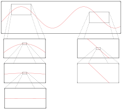 - Differenzierbare Funktionen sind damit genau diejenigen Funktionen, die sich lokal durch lineare Funktionen approximieren lassen (siehe Abbildung). Diese Definition geht auf Karl Weierstraß zurück und wird Weierstraßsche Zerlegungsformel genannt.