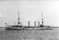 Die Stettin war ein Kleiner Kreuzer der Kaiserlichen Marine und ihr zweiter Kreuzer mit Turbinenantrieb. Sie war zwar das letzte Schiff der Königsberg-Klasse,[1] das vom Stapel lief, wurde aber noch vor den Schwesterschiffen Nürnberg und Stuttgart fertiggestellt. Wie bei der Nürnberg und der Stuttgart war auch bei der Stettin der achtere Schornstein „detachiert“, d. h., er hatte einen größeren Abstand zum mittleren Schornstein, als dieser zum vorderen Schornstein.