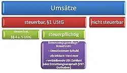 Umsätze können nach dem deutschen Umsatzsteuergesetz steuerbar oder nicht steuerbar sein. Steuerbare Umsätze wiederum können steuerfrei oder steuerpflichtig sein.