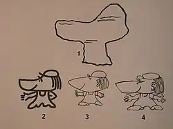 Der untere Teil des Felsens ist ringsum zu einer niedrigen, etwa 6 Meter im Umfang messenden Säule ausgewittert und trägt die ganze obere Steinmasse. Diese ist ihrerseits nochmals von einem wuchtigen Block überlagert, so dass das Ganze einem Schuh oder Stiefel ähnlich sieht.[4][5][6]