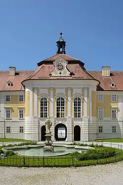 - Hofgarten: Prunkgarten des Barock (ursp. etwa zw. Erbauung bis 1740 und 1780er); 1996 nach historischen Vorbildern restauriert;[6] Klostergarten als Schaugarten; mit ca. 110 zumeist historischen Rosensorten; gehört zu den bedeutendsten gartenarchitektonischen Denkmalen Österreichs und steht als solcher explizit unter Denkmalschutz (Nr. 23 im Anhang zu § 1 Abs. 12 DMSG)