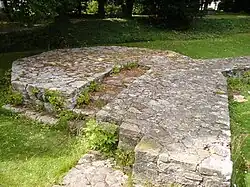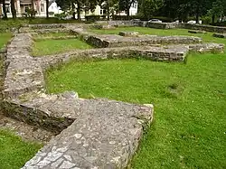Dieser entspricht typologisch Pfalz- und Burgkapellen des 10. Jahrhunderts. Einige in Lehm gesetzte Mauern verlaufen unter den Fundamenten der Stiftskirche und können somit hypothetisch zu einer vorangegangenen Burganlage gehören.