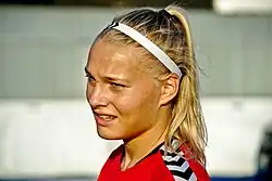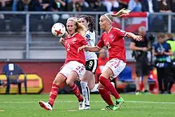 In den darauf folgenden drei Spielen in der Qualifikation für die EM 2017 spielte sie jeweils über 90 Minuten. Beim 2016er Januar-Trainingslager in der Türkei wurde sie bei zwei Spielen gegen die Niederlande je einmal aus- und eingewechselt. Für den Algarve-Cup 2016 wurde sie nicht berücksichtigt.[13] Sie kam dann erst im Juni bei zwei EM-Qualifikationsspielen zu weiteren Einsätzen. Es folgten drei Einwechslungen beim Sincere-Cup 2016 in der Volksrepublik China, wobei sie im ersten Spiel gegen Usbekistan in der ersten Minute der Nachspielzeit den 2:1-Siegtreffer erzielte.[14] Danach wurde sie nur einmal nicht eingesetzt, aber zumeist ein- oder ausgewechselt. Im Juni wurde sie dann für die EM-Endrunde 2017 nominiert und kam in allen sechs Spielen ihrer Mannschaft zum Einsatz. Im ersten Spiel gegen Belgien stand sie in der Startelf und spielte im Angriff, wurde aber in der 59. Minute ausgewechselt. Im zweiten Spiel gegen die Niederlande wurde sie in der 69. Minute für Mittelfeldspielerin Katrine Veje eingewechselt. Im dritten Gruppenspiel und den Spielen der K.-o.-Runde stand sie dann jeweils in der Startelf und spielte in der Abwehr über die volle Distanz. Dabei setzte sich ihre Mannschaft zunächst im Viertelfinale gegen Titelverteidiger Deutschland mit 2:1 und dann im Halbfinale gegen Neuling Österreich im Elfmeterschießen durch. Damit standen die Däninnen erstmals im Finale eines großen offiziellen Turniers, verloren dieses aber gegen die Gastgeberinnen mit 2:4. In der anschließenden Qualifikation für die WM 2019 kam sie zu drei Einsätzen. Die Däninnen scheiterten letztlich in den Playoffs an Europameister Niederlande.