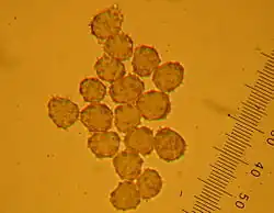 Das Sporenpulver des Stinkenden Warzenpilzes ist braun (dunkel purpurbraun); die Sporen sind unter dem Mikroskop stumpfstachelig („warzig“), rundlich bis breitelliptisch (9–12 × 6–9 µm). An den Septen der Hyphen befinden sich Schnallen.[3][4]