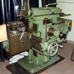 Im Gegensatz zur Hobelmaschine ist das Werkstück eingespannt und wird bei jedem Hub des Stoßmeißels um den jeweils zuvor eingestellten Hub, quer zur Stoßrichtung des Meißels, schrittweise und während des Leerhubs (Rückwärtsbewegung des Werkzeugs) automatisch zugeführt. Das Werkzeug bewegt sich darüber hinweg.