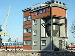 - Kruse-Speicher (Silo 2, 22 Meter hoch) von 1940 (D), seit 2020 mit 39 Ferienwohnungen[6]
