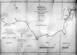 Mitsamt allen Abzweigungen zu angrenzenden Kohlezechen, zum Depot in Darlington und nach Yarm war die Strecke der S&DR insgesamt 26¾ Meilen (42,8 km) lang.[35] Die größtenteils verwendeten Schienen aus Temperguss waren 28 Pfund pro yard (13,9 kg/m) schwer, bei den Abzweigungen verwendete man gusseiserne Schienen mit einem Gewicht von 57 ½ Pfund pro yard (28,5 kg/m).[36] Die Strecke war eingleisig, wobei es auf jeder Meile (1,6 km) jeweils vier Ausweichen gab.[37] Quadratische Schwellen trugen jede Schiene einzeln, so dass die Pferde zwischen ihnen laufen konnten.[24] Westlich von Darlington bestanden die Schwellen aus Stein, östlich davon aus Eichenholz. Stephenson hätte überall die Verwendung von Steinen vorgezogen, doch die Transportkosten hierfür waren zu hoch, da sie alle in der Gegend um Bishop Auckland abgebaut werden mussten.[38] Zum Zeitpunkt der Streckeneröffnung war die Gesellschaft verschuldet und konnte keine weiteren Kredite aufnehmen. Anfang 1826 schoss Pease zweimal Geld vor, damit die Arbeiter bezahlt werden konnten. Im August 1827 waren die Schulden beglichen und im selben Monat eröffnete die S&DR den Abzweig zur Black-Boy-Zeche, ebenso begann sie mit dem Bau von Zweigstrecken nach Croft-on-Tees und Hagger Leases. Im Laufe des Jahres 1827 stieg der Aktienkurs von 120 auf 160 Pfund.[39]