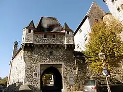 Stolberg (Rheinland) [], amtlich Kupferstadt Stolberg (Rhld.), ist als Große Mittelstadt ein Mittelzentrum und eine regionsangehörige Stadt in der nordrhein-westfälischen Städteregion Aachen. Der Name der Stadt stammt von der inmitten der Stolberger Altstadt gelegenen Burg Stolberg, bei der die Ursprünge des Ortes liegen und die das Wahrzeichen der Stadt ist. Stolbergs Beinamen Kupferstadt und Älteste Messingstadt der Welt – Kupferstadt ist seit dem 24. Juli 2012 auch offizieller Titel von Stolberg[2] – weisen auf die lange Tradition seiner metallverarbeitenden Industrie, die der Stadt wirtschaftlichen Aufschwung, aber auch Altlasten brachte. Neben der Altstadt sind die Galmeiflora und die zahlreichen Kupferhöfe und Reitwerke sehenswert.