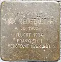 HIER WOHNTE MAX NEUSTÄDTER JG. 1922 FLUCHT 1934 FRANKREICH VERSTECKT ÜBERLEBT |
