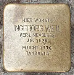 Im November 2011 wurden in der Südstadt Tübingen Stolpersteine verlegt.