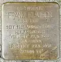 HIER WOHNTE FRANZ KLAIBER JG. 1897 SEIT 1925 VERSCHIEDENE HEILANSTALTEN 'VERLEGT' 17.5.1940 GRAFENECK ERMORDET 27.5.1940 'AKTION T4' |