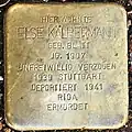 HIER WOHNTE ELSE KÄLBERMANN GEB. BLATT JG. 1907 UNFREIWILLIG VERZOGEN 1939 STUTTGART DEPORTIERT 1941 RIGA ERMORDET |