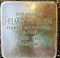 HIER WOHNTE HELMUT FRÖHLICH ELKANA RON FRÖHLICH JG. 1927 FLUCHT 1938 PALÄSTINA |