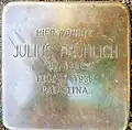 HIER WOHNTE JULIUS FRÖHLICH JG. 1896 FLUCHT 1938 PALÄSTINA |