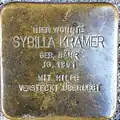 HIER WOHNTE SYBILLA KRAMER GEB. BÄHR JG. 1891 MIT HILFE VERSTECKT ÜBERLEBT |
