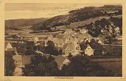 - ↑ a b c Vgl. Stetten am kalten Markt d) Storzingen. In: Das Land Baden-Württemberg. Amtliche Beschreibung nach Kreisen und Gemeinden. Band VII: Regierungsbezirk Tübingen. Kohlhammer, Stuttgart 1978, ISBN 3-17-004807-4. S. 879–881, hier S. 881.