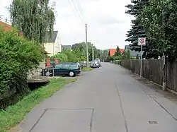 Beim später errichteten Gasthof „Weißes Roß“ liegt auch die historische Wegeführung des amtlichen Kirchwegs Augustusweg, zudem trifft etwas weiter nördlich die von Westen kommende Salzstraße/Hausgasse auf den Lößnitzbach.