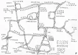 Straßenbahnlinien der EVAG (teilweise Gemeinschaftsverkehr) im Jahr 1967: