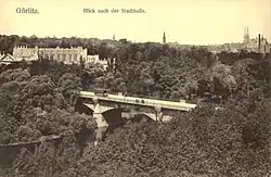 Die Straßenbahnstrecke schwenkte nun in Richtung Stadthalle um und überquerte die Lausitzer Neiße über die Reichenberger Brücke. In der Nähe der Stadthalle existierte ebenfalls eine Haltestelle für Besucher kultureller, politischer oder Sportveranstaltungen. Nach dem Kriegsende 1945 endete die Strecke an der Stadthalle. Die Kuppelendstelle befand sich an der Furtstraße.