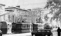 Die meterspurige Straßenbahn war eine der ersten im zaristischen Russland und wurde am 3. September 1899 in Betrieb genommen. Als Folge der Kriegshandlungen während der Eroberung der Stadt durch deutsche Truppen war sie ein Jahr lang stillgelegt, da Oberleitungen beschädigt waren, aber auch weil das für die Stromversorgung unverzichtbare Kohlekraftwerk zeitweilig außer Betrieb war.