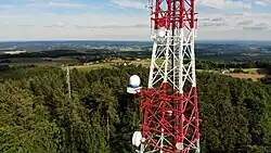 Seit dem 20. Mai 2020 befindet sich an der nordöstlichen Kante am Mast auf 41 Meter ein FURUNO WR 2120 Wetterradar des Wegener Centers für Klima und Globalen Wandel der Universität Graz.[6] Es dient zur Erforschung von Starkregen und Gewittern sowie deren Veränderungen im Zuge des Klimawandels und ergänzt den Datensatz des bestehenden WegenerNet in der Region Feldbach (Südoststeiermark). Das Radar ist nach Norden ausgerichtet und sendet zwischen 270° (West) bis 90° (Ost) mit 9,4 GHz (Bandbreite 60 MHz). Seine aktuelle Reichweite ist auf das WegenerNet mit einem Radius von 30 Kilometern eingestellt, die maximale Reichweite beträgt 70 Kilometer. Ein wesentliches Merkmal des Radars ist seine geringe Größe mit nur mehr einem Meter Durchmesser, welche durch den Einsatz von Solid-State-Technologie in der Radar-Konstruktion möglich wurde.