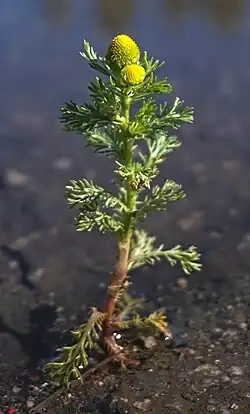- ↑ Matricaria discoidea im Germplasm Resources Information Network (GRIN), USDA, ARS, National Genetic Resources Program. National Germplasm Resources Laboratory, Beltsville, Maryland.