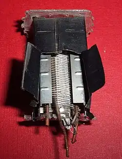 - Steuergitter und Schirmgitter sind mit gleicher Steigung genau übereinander gewickelt, wodurch der Elektronenstrom in vielen engen Schichten zur Anode gelangt.[3]