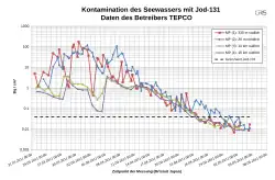 - ↑ a b c Result of Nuclide Analysis of Seawater (Coast) ( vom 1. Mai 2011 auf WebCite) (englisch, pdf). Tepco, 1. Mai 2011, (PDF; 78 kB) am 1. Mai 2011, abgerufen am 1. Mai 2011.