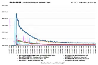 - ↑ Earthquake Report – JAIF, No. 177 ( vom 21. August 2011 auf WebCite) (englisch, pdf). JAIF / NHK, 18. August 2011, abgerufen am 21. August 2011. Umgerechnet von 200 MBq/h im Zweiwochenzeitraum.