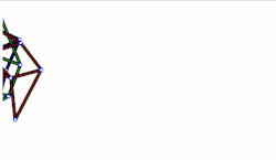 Um die charakteristische Laufbewegung zu erreichen, entwickelte Theo Jansen das im Bild zu sehende Bein. Um die Proportionen der Stangen zu bestimmen, entwickelte Jansen ein Computerprogramm auf einem Atari-Computer. Der Algorithmus begann mit Zufallswerten, wählte dann die besten aus und erzeugte daraus wiederum Varianten (evolutionärer Algorithmus).