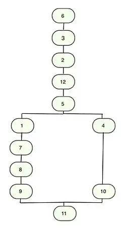 Allerdings müssen in einer Harris-Matrix nicht alle Relationen zwischen allen Straten aufgezeichnet werden. Gemäß dem Gesetz der stratigraphischen Abfolge (law of stratigraphical succession) sind für ein Stratum nur die Relationen mit der jeweils darüberliegenden und der jeweils darunterliegenden Schicht relevant. Somit kann die Harris-Matrix auf das Wesentliche reduziert werden.
