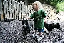 Häufige Tiere sind domestizierte Ziegen und Schafe, Meerschweinchen, Kaninchen, Hängebauchschweine und Minischweine, manchmal auch Esel, Miniponys (besonders Shetlandponys) und Hühner.
