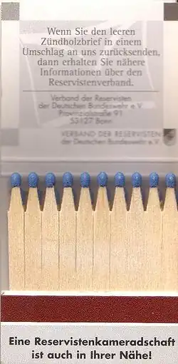 Eine Variante sind die Streichholzbriefe, die eine oder zwei Reihen miteinander verbundene Zündhölzchen enthalten; zur Benutzung werden die Zündhölzer jeweils herausgebrochen. Zündholzbriefe werden zumeist als Reklameträger genutzt, da sie mehr Fläche zum Bedrucken (auch auf der Innenseite der Klappe) bieten als eine Schachtel. Vorteil gegenüber Zündhölzern in einer Schachtel ist, dass sie aufgrund ihres flachen Formats leicht per Post (z. B. als Beilage zu einem Brief) verschickt werden können und die Zündhölzer nicht herausfallen können, wie es bei einer Schachtel möglich ist. Nachteilig ist die geringere Zahl von Streichhölzern, die sich darin unterbringen lässt, was bei einer Verteilung als kostenloses Werbegeschenk aber keine Rolle spielt.