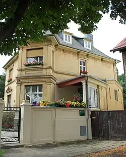 Die Villa entstand in der Zeit um 1880. In ihrer Gestaltung finden sich Elemente des Spätklassizismus und des Historismus. Bedeckt wird sie von einem Mansarddach. Ein Eckrisalit weist zur Straße hin. Ein weiterer Risalit umfasst die Treppe und befindet sich auf der Gartenseite. Dort ist auch eine hölzerne Veranda angefügt.