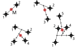 Der mittlere Treffpunkt kann auch zeichnerisch ermittelt werden. Sind es beispielsweise drei Treffer, wird hierzu zwischen dem ersten und dem zweiten Treffer eine Gerade gezogen. Die Gerade wird in zwei gleiche Teile geteilt und von der Teilung aus wird eine Gerade zum dritten Treffer gezogen. Diese Gerade wird in drei gleiche Teile geteilt. Der Punkt der ersten Teilung ist der mittlere Treffpunkt. Bei mehr Treffern wird jede weitere Verbindungslinie entsprechend in je ein Teil mehr unterteilt. Der erste Teilungspunkt der letzten Verbindungslinie ist jeweils der mittlere Treffpunkt.