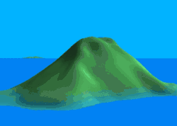 | Stromboli von Nordosten aus der Luft gesehen; rechts ist die Sciara del Fuoco zu sehen | ||