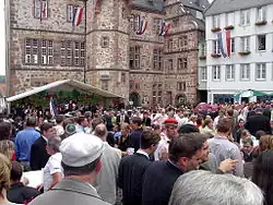 - ↑ Stadtteilgemeinden werben für einen friedlichen Marktfrühschoppen. In: Oberhessische Presse Marburg. 4. Mai 2002.