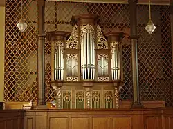 II/P | 19 | 1882 Pedalwerk durch Karl Landolt um zwei weitere Register erweitert; 1950 Umbauten durch Förster & Nicolaus, dabei Verlust der originalen Gamba 8´. 1998 Restaurierung durch dieselbe Firma (heute II/P/21); zum großen Teil erhalten.[16] Disposition entspricht nach Restaurierung nicht der Originaldisposition (statt Salicional 4′ heute Salicional 8′ Diskant, statt Krummhorn 8′ Diskant im Echo heute Trompet 8′ Diskant). |