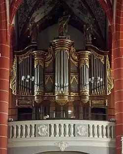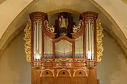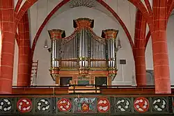 II/P | 26 | Ursprünglich hinterspielige Brüstungsorgel mit Unterpositiv als Echo. 1896 eingreifender Um- und technischer Neubau durch Johann Stockhausen; 15 Register ganz oder teilweise erhalten; restauriert und technisch rekonstruiert 1988 Gebr. Oberlinger, Nachintonation und klangliche Rekonstruktion 2011 Raab-Plenz Orgelbau, Bad Kreuznach[21] |